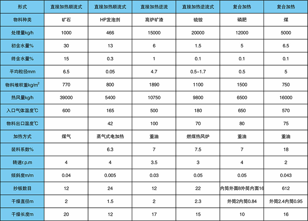 1.化工、礦山、冶金等行業(yè)大顆粒,比重大物料干燥,如:礦石、高爐礦渣、磷肥、硫銨。